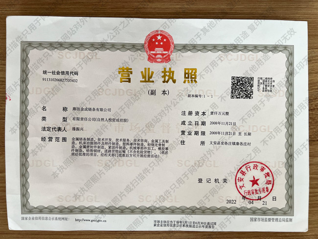 廊坊金成鏈條有限公司設擁有單獨運輸體系,為產(chǎn)品配送全國各地提供了保障。…...